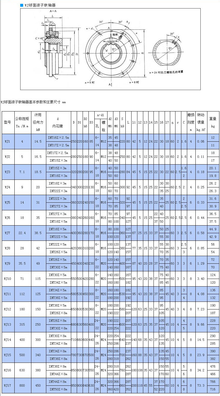WJ型漸開(kāi)線花鍵聯(lián)接球面滾子聯(lián)軸器